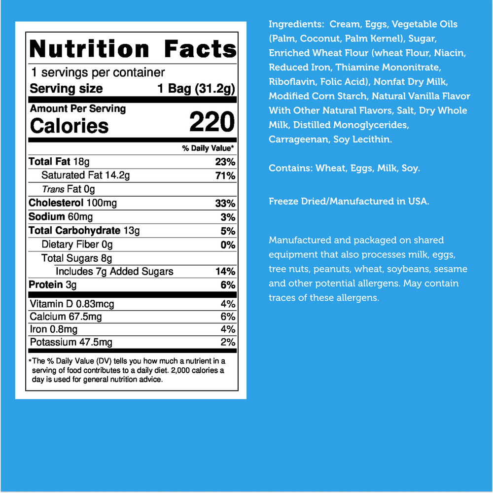Indulge in the light, airy, and irresistibly creamy delight of our Freeze-Dried Belgian Cream Puffs! Made from a time-honored Belgian recipe, these delicate pastries feature a crispy, golden shell filled with smooth, whipped vanilla cream—freeze-dried to perfection for a unique, melt-in-your-mouth experience.