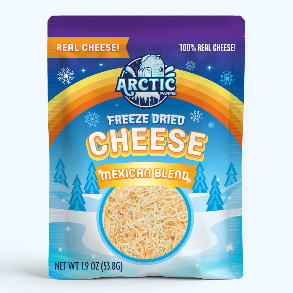 Bring bold, south-of-the-border flavor to your snacking routine with Arctic Farms’ Freeze-Dried Mexican Blend Cheese. Featuring a savory mix of Monterey Jack, Medium Cheddar, Queso Quesadilla, and Asadero, this vibrant blend is freeze-dried for a light, crispy texture and rich, layered taste. Whether you're topping tacos, elevating trail mix, or packing flavor into prep kits, this shelf-stable cheese mix delivers authentic satisfaction with zero refrigeration needed.