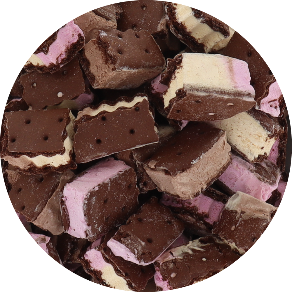 Indulge in a delicious treat with our Freeze Dried Ice Cream Sandwich Bites! Made with real ice cream, these bite-sized treats are perfect for a quick and tasty snack. With a crunchy texture and out-of-this-world flavor, it's the perfect snack for space enthusiasts and anyone looking for a unique snack experience. Try it now!