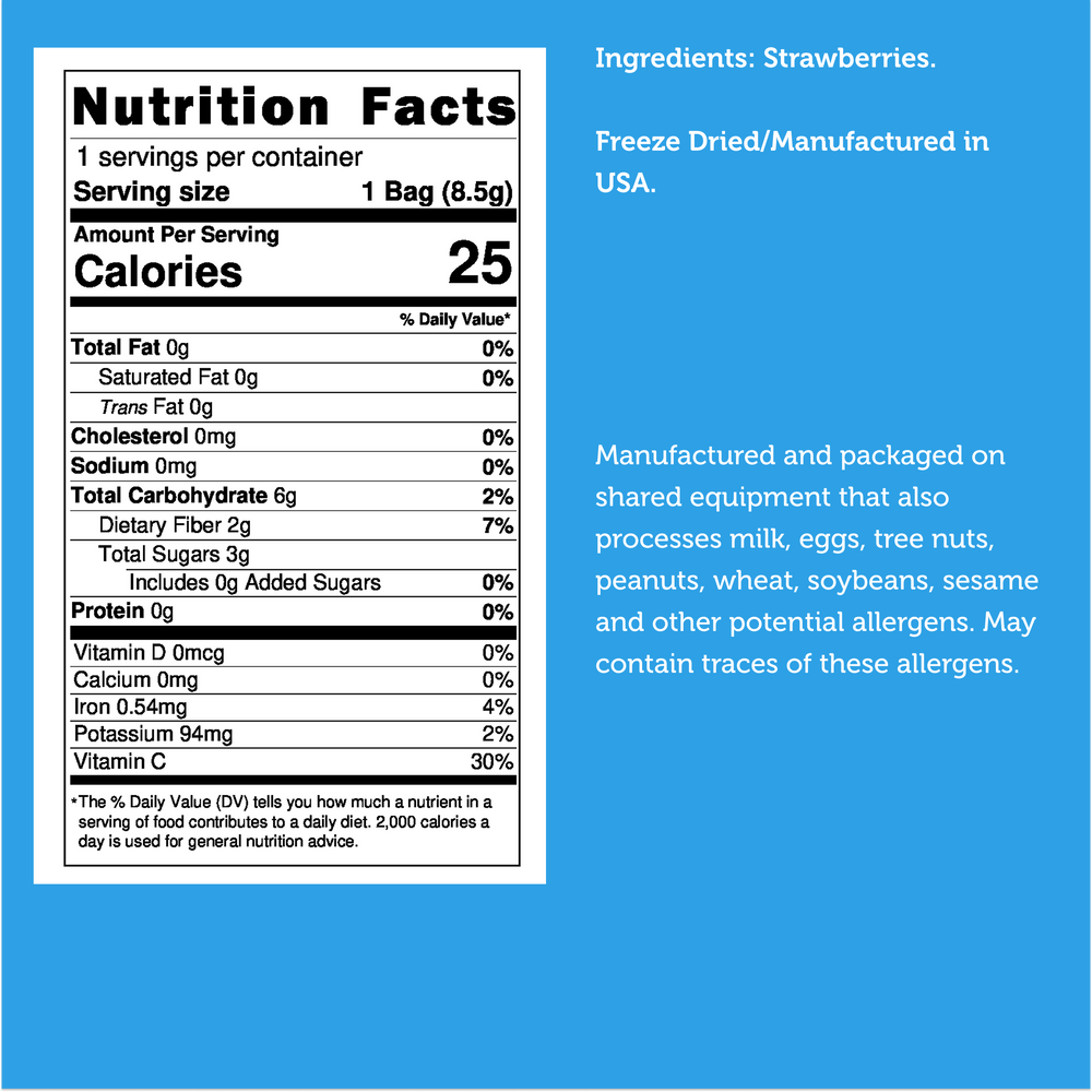 Get your daily dose of fruit with these delicious Freeze Dried Strawberry (Wholes and Halves) . Perfect for snacking or Adding to salads/cereal/shake, these strawberries pack a punch of flavor in every bite. Plus, with their lightweight texture and long shelf life. Add as a topping on salads or smoothies as well as deserts.
