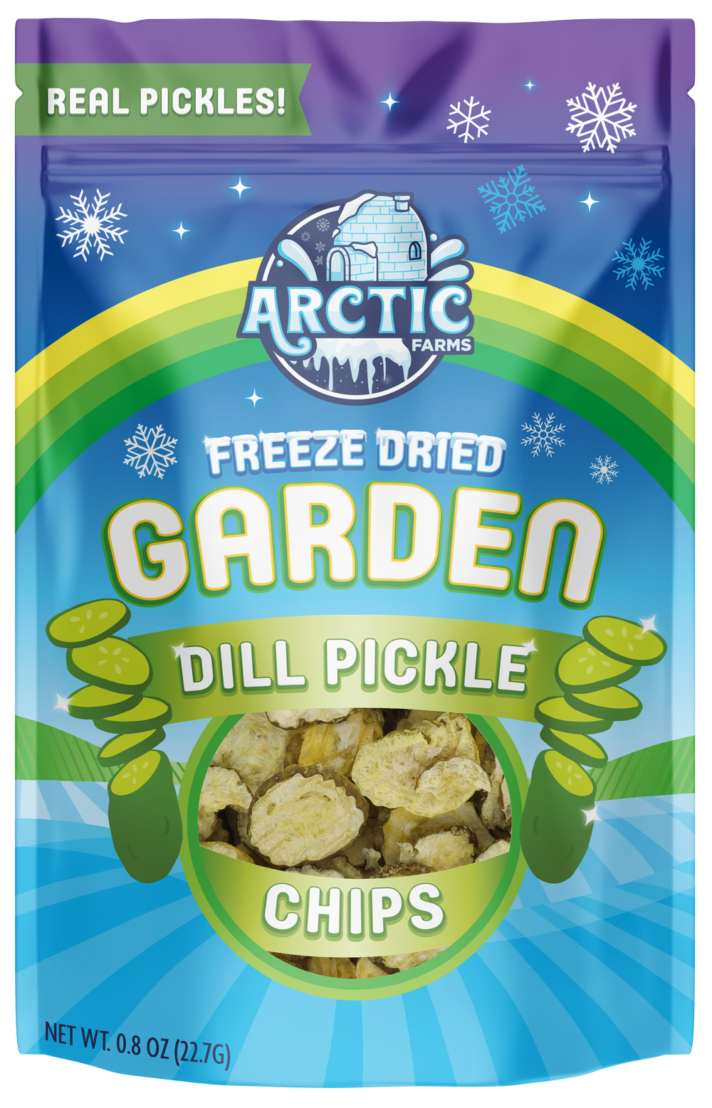 Satisfy your craving for tangy, crunchy Dill Pickle goodness with Arctic Farms' Freeze Dried Dill Pickle Chips. Perfect for Pickle chips snacking, these chips deliver all the bold flavor of dill pickles in a convenient, mess-free form. Ideal for on-the-go or as a unique addition to your favorite dishes.