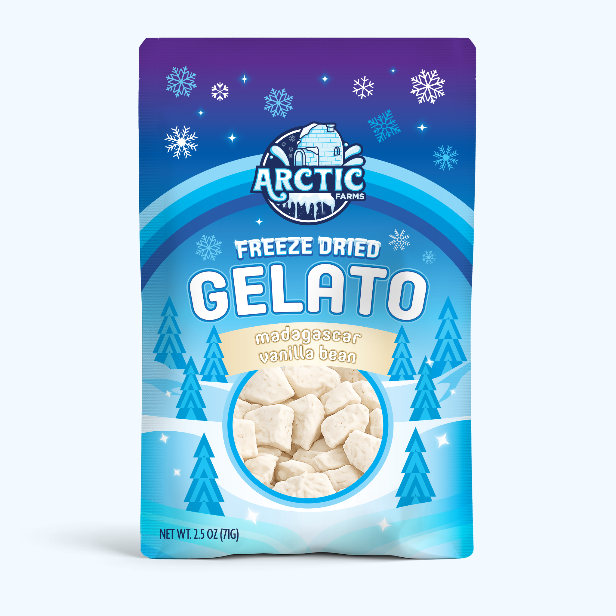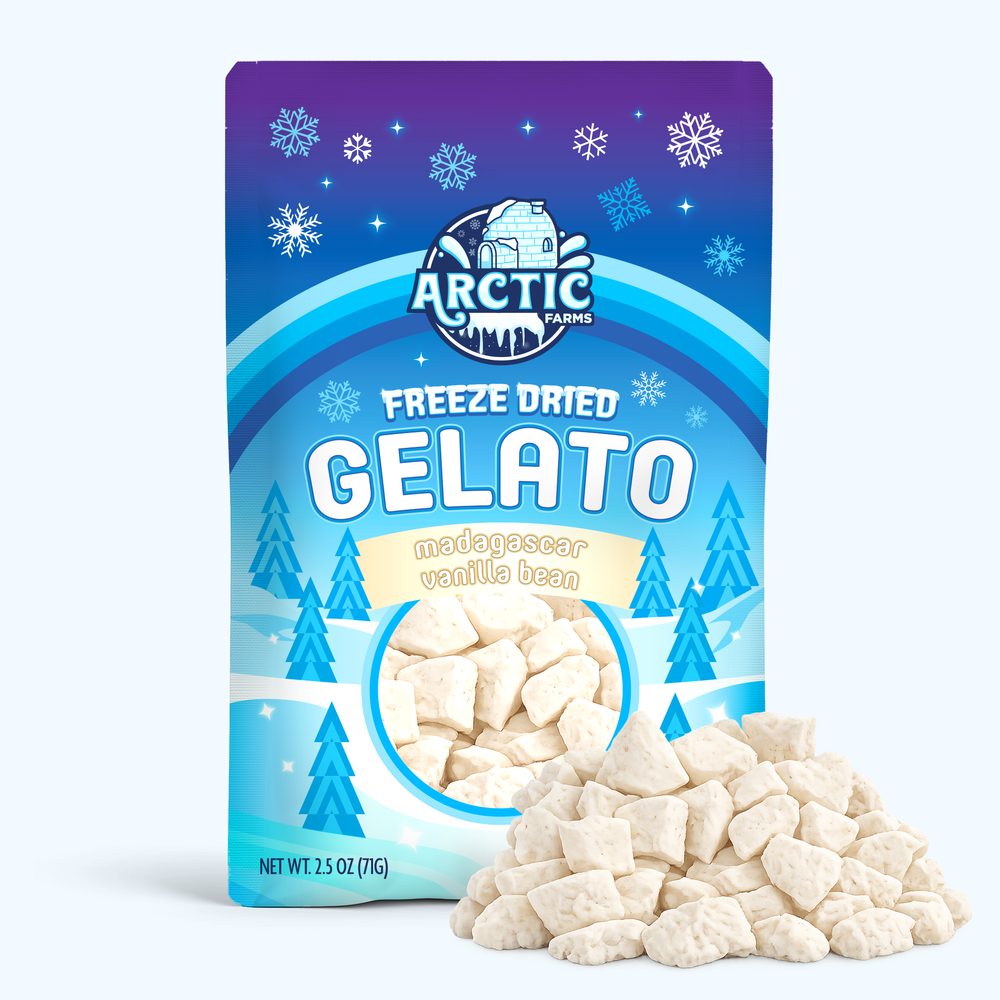 Arctic Farms Freeze‑Dried Gelato captures the deep, aromatic flavor of real Madagascar vanilla beans—warm, floral, naturally sweet—and preserves it in a light, airy crunch that dissolves into creamy gelato flavor. It’s a refined dessert snack made for vanilla lovers who want purity, intensity, and a clean, modern texture.