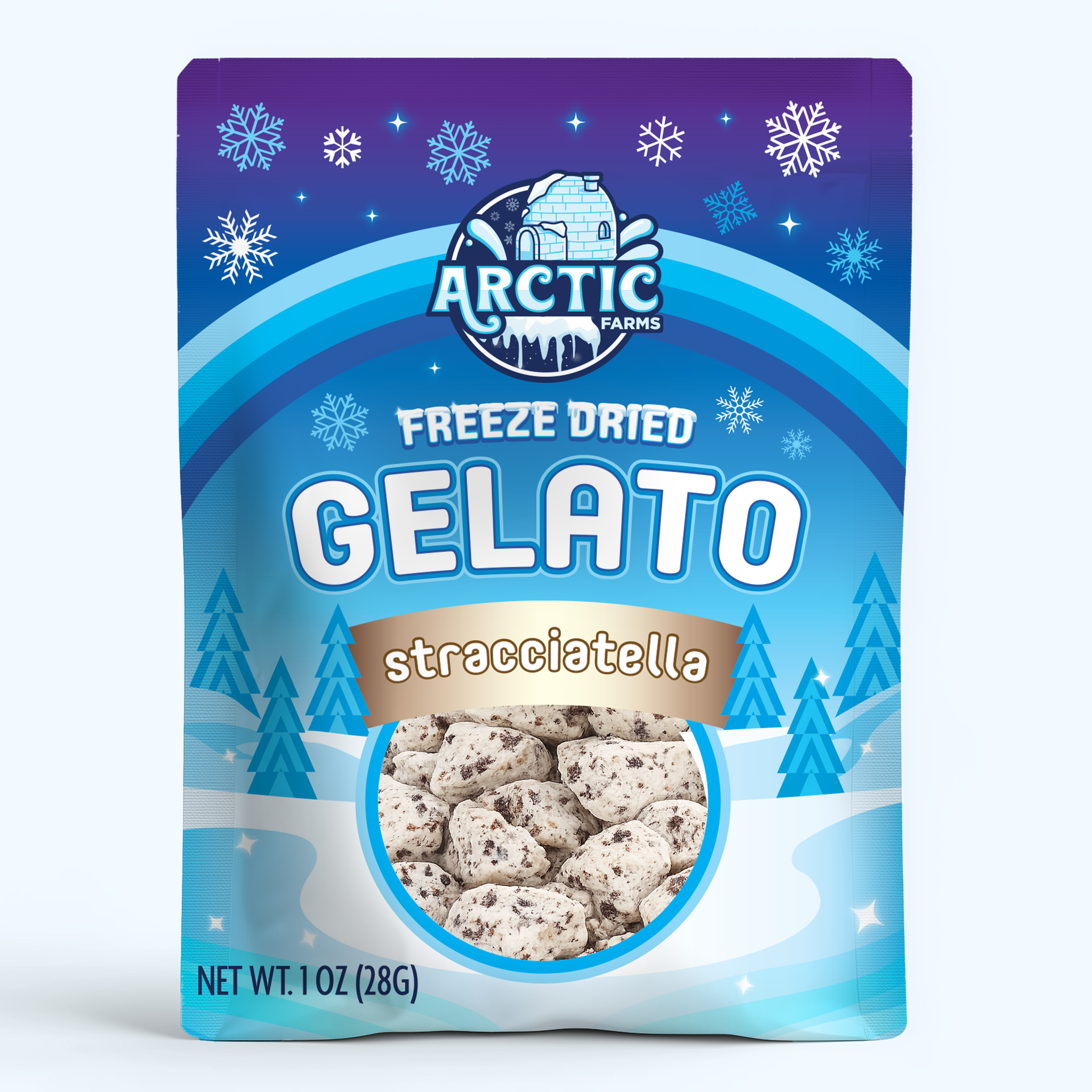 Arctic Farms Freeze‑Dried Gelato captures the elegance of traditional stracciatella: smooth, sweet cream gelato infused with thin, crunchy chocolate shards that melt seamlessly into each bite. The result is a light, airy crunch that dissolves into rich, creamy flavor with subtle chocolate notes. It’s a refined, timeless Italian dessert reimagined as a modern, portable, mess‑free snack.