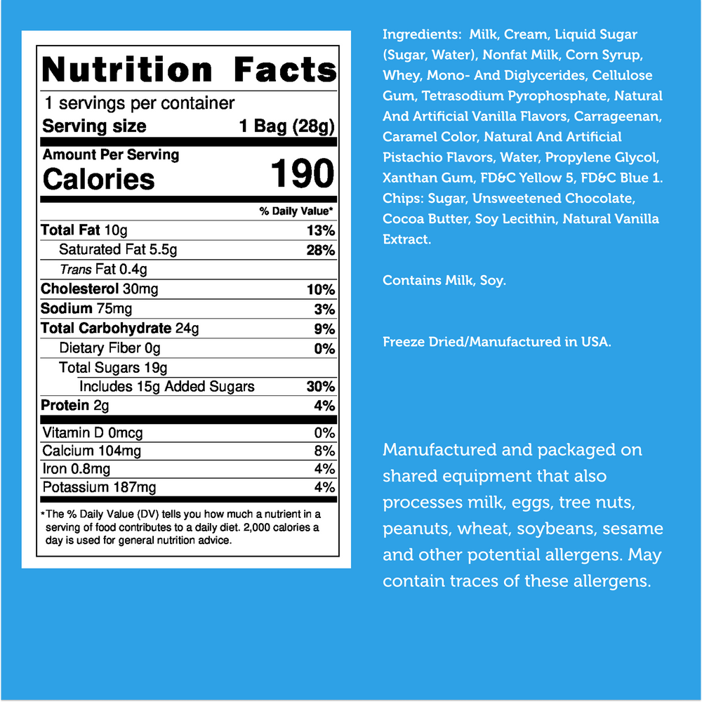 Freeze-Dried Dubai Style Ice Cream – Exotic Pistachio with Chocolate Chip Crunch, Ready-to-Eat Gourmet Dessert (1oz | 2.5oz | 1lb Bulk Bag)