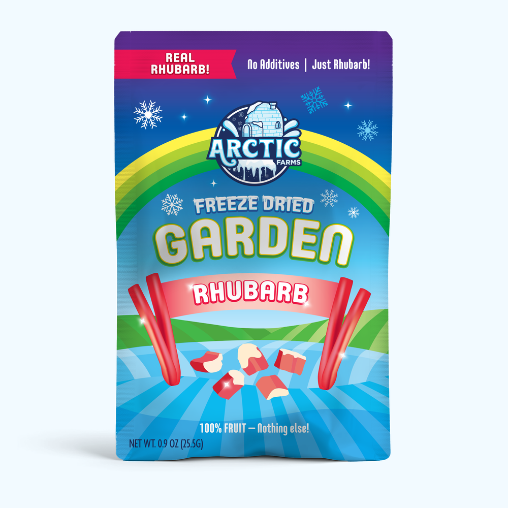Bright, tangy, and naturally refreshing—Arctic Farms Freeze-Dried Red Rhubarb delivers a bold, tart crunch with clean, garden‑fresh flavor. Made from 100% real red rhubarb and nothing else, each slice is freeze-dried at peak ripeness to preserve its vibrant color, crisp texture, and clean-label purity. No sugar added, no preservatives—just pure, single‑ingredient rhubarb.