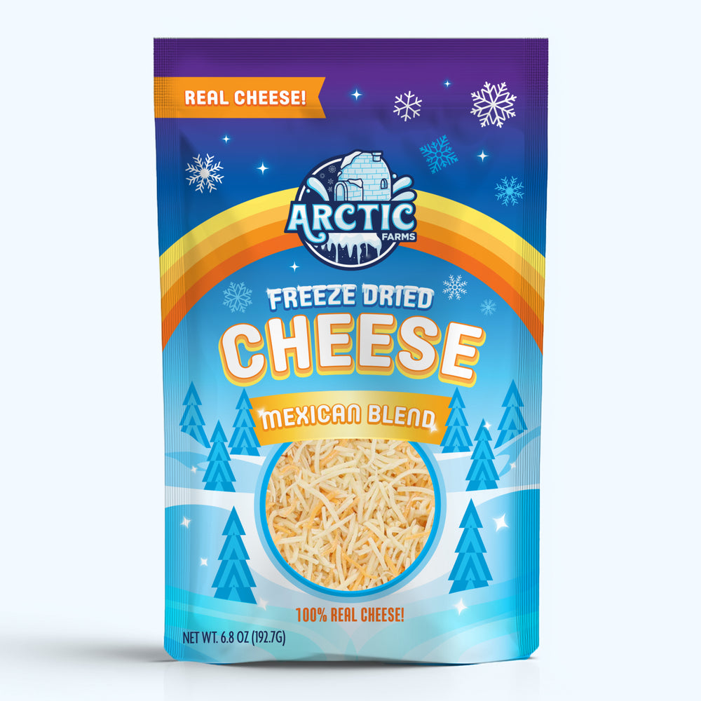 Bring bold, south-of-the-border flavor to your snacking routine with Arctic Farms’ Freeze-Dried Mexican Blend Cheese. Featuring a savory mix of Monterey Jack, Medium Cheddar, Queso Quesadilla, and Asadero, this vibrant blend is freeze-dried for a light, crispy texture and rich, layered taste. Whether you're topping tacos, elevating trail mix, or packing flavor into prep kits, this shelf-stable cheese mix delivers authentic satisfaction with zero refrigeration needed.